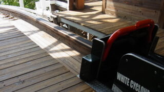 もともとあった小型フリスビーがパワーアップして帰ってきた完全体がこの両機です!インバーテッドタイプ(逆さ吊り)になり、アームも長くなり、最大角度も大幅アップした究極進化版。最高部43mに到達したときの浮遊感はとにかく格別で、エアタイムをしっかり味わえます。さらにこのアトラクション最大の面白さは「予測不可能な回転」にあります。乗客の重量バランスによって回転のタイミングや回数が変わるため、乗るたびに絶叫マシンになったりならなかったりする点も大きな魅力です。全力で叫ぶことになる回と、意外と余裕のある回があり、それがまた次も乗りたくなる理由になっています。